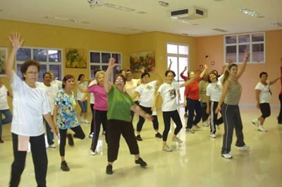 A ginástica aeróbica é baseada nos movimentos da dança e ajuda a melhorar as condições cardiovasculares e cardiorrespiratórias, além da coordenação motora e da consciência corporal. Por ser uma atividade aeróbica, é excelente para trabalhar todos os grupos musculares e ajudar na queima de gordura. As aulas são ministradas duas vezes por semana por educador físico e têm duração de quarenta e cinco minutos.